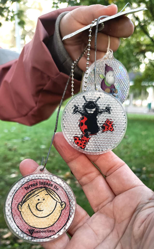 Esimerkiksi yritykset ovat panostaneet näyttäviinkin heijastimiin, joita löytyi ainakin torstaiaamuna useita. Heijastinpuut ovat käytössä lokakuun ajan.